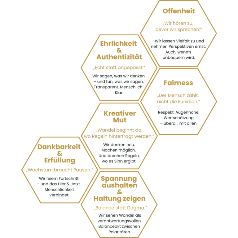 Für uns sind Werte mehr als Worte. Sie zeigen, wie wir denken, fühlen und handeln. Sie sind unser Kompass – und unser Versprechen.